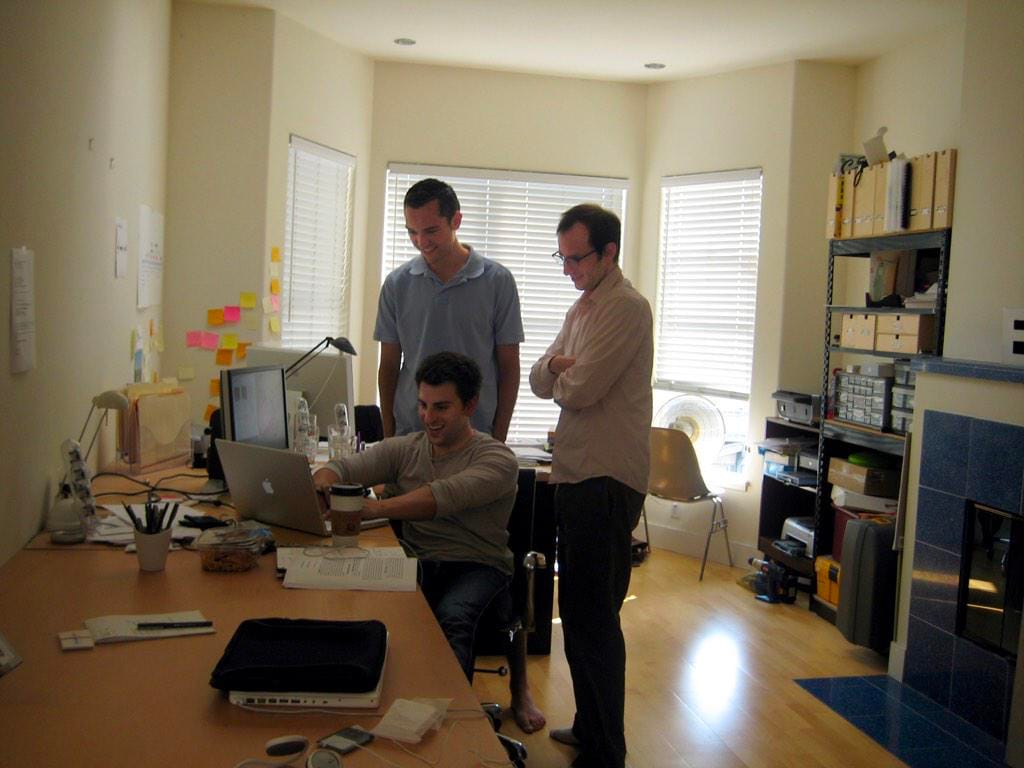 Brain Chesky, Joe Gebbia, and Blecharczyk in their San Francisco apartment