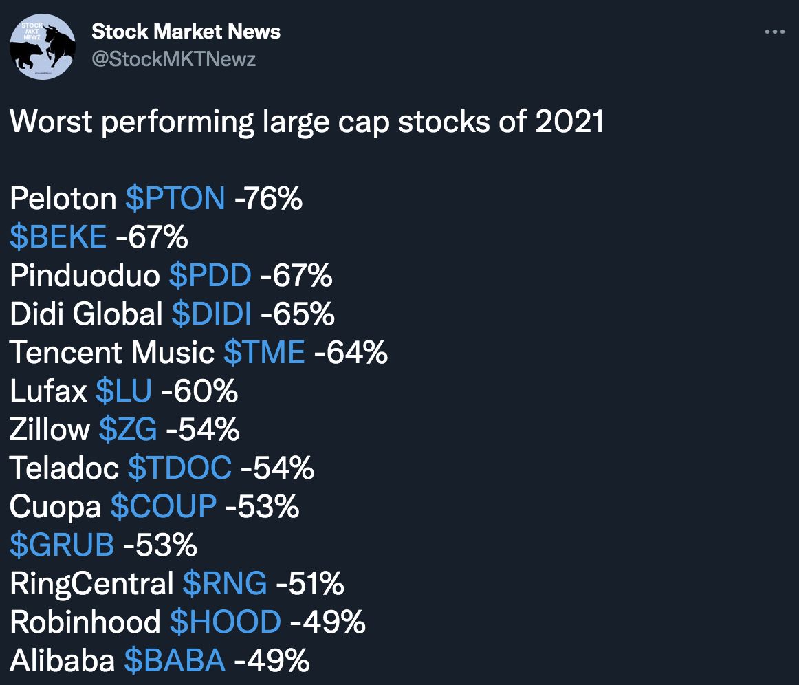 But for all the drama and turbulence we had, each of the major indexes ended up performing really well in 2021. The performance of those indexes does cover up a large group of popular stocks that had a really rough year. For our first newsletter of 2022, we're recapping the biggest moments from 2021, including: