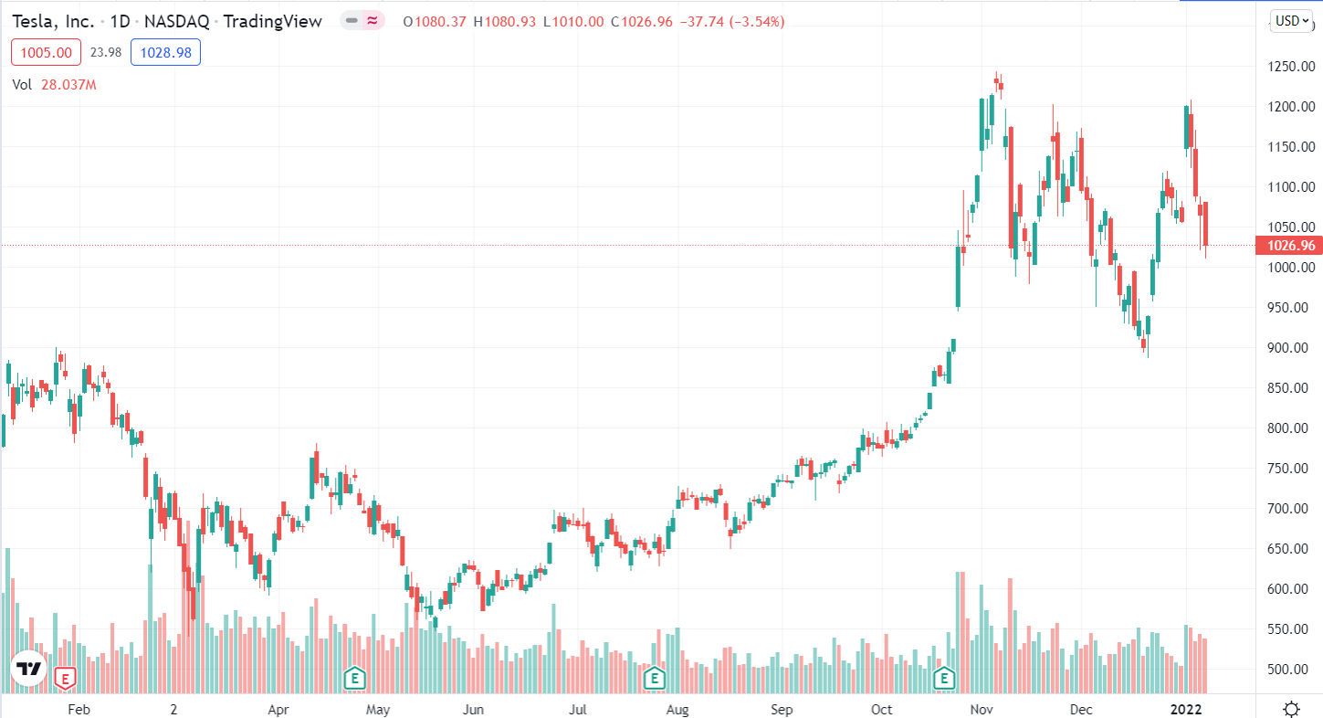 Elon decided to do a classic rug pull on crypto bros, calling out Bitcoin and the crypto community for its increasingly large usage of energy and waste products. After Elon’s call out of the crypto community, retail investors began to sell. This caused the price to fall over 50% and under $30,000 before rallying into the end of the year.