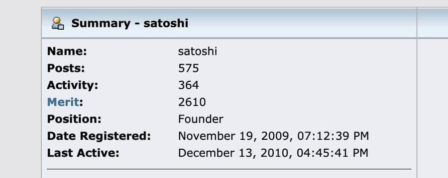 Nakamoto’s Activity Log on the Bitcoin Talk Forum
