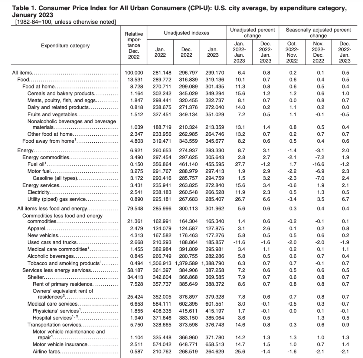 CPI for January came in at +0.5% (MoM), in line with expectations
