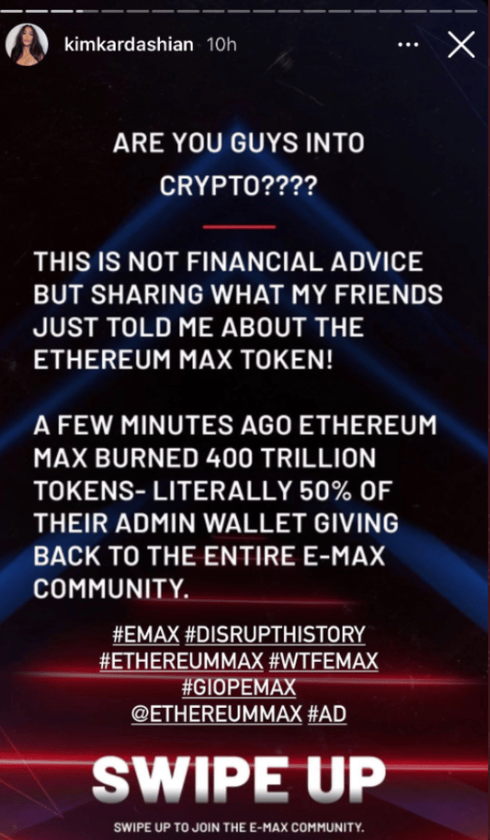 At the beginning of the summer crypto craze, multiple prolific celebs, including Kim Kardashian and Floyd Mayweather, took the plunge into the crypto world by promoting the EthereumMax token. In other words, they promoted shitcoin to millions of people. Now, the Central District of California is filing a class action lawsuit against them and EMax for making “false or misleading statements.”