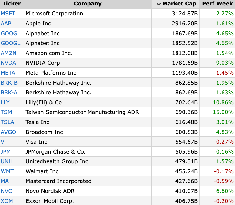 How The Largest Stocks Performed