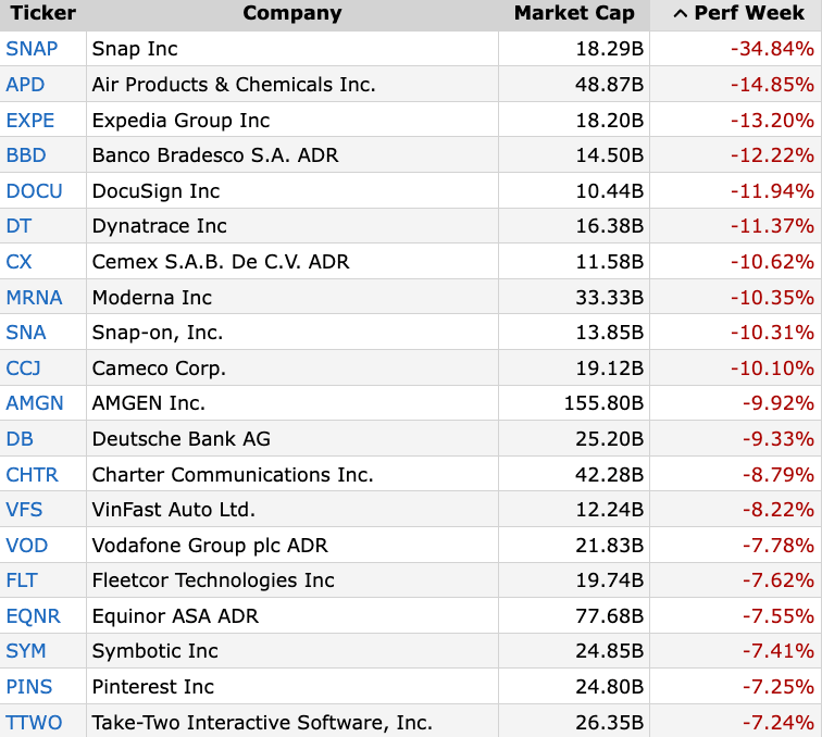 Worst Performing Large Cap Stocks