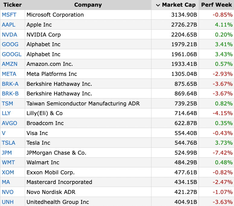 How the Largest Stocks Performed