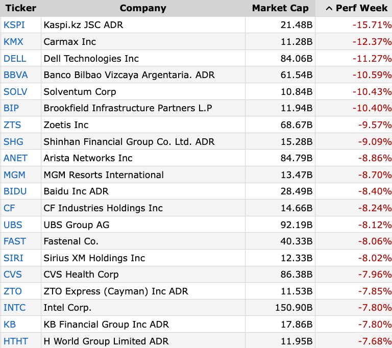 Worst Performing Large Cap Stocks