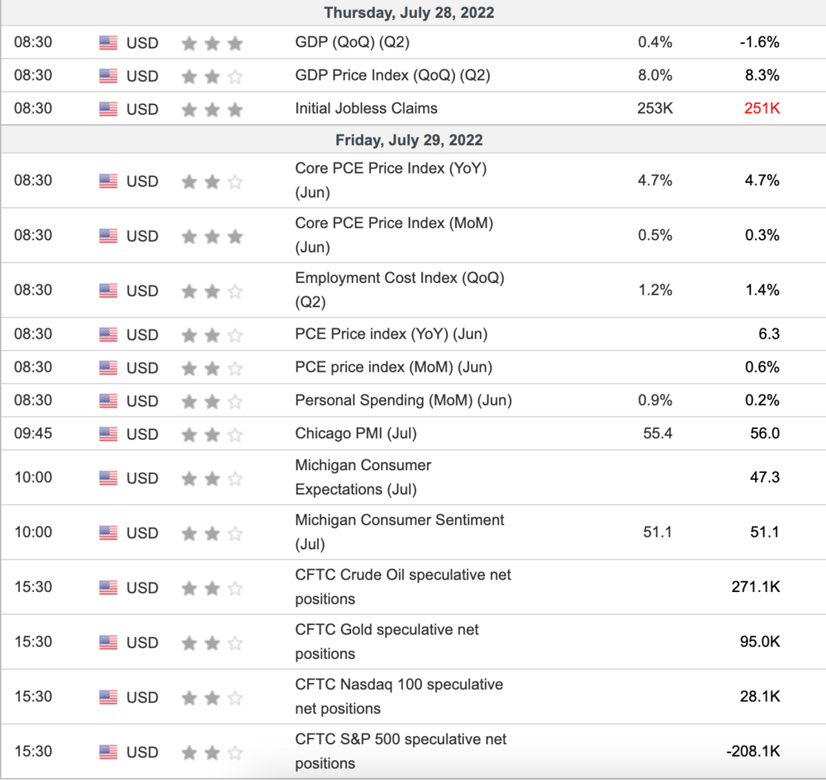 GDP: The calendar above has the estimate at +0.4%, but estimates have been coming down and many now believe that GDP print will be negative, including the Atlanta FED.
