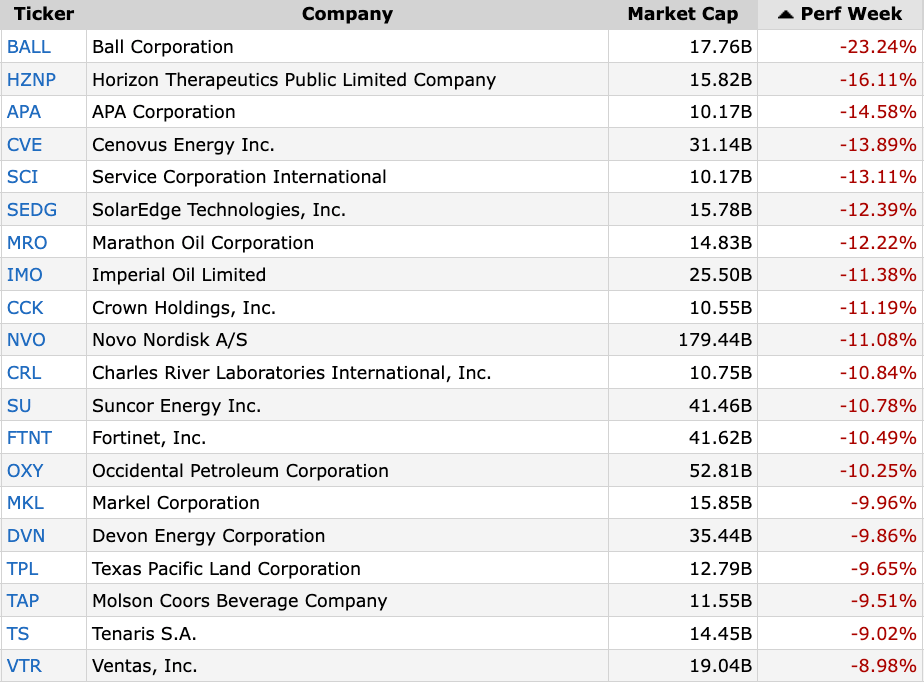 Worst Performing Large Cap Stocks